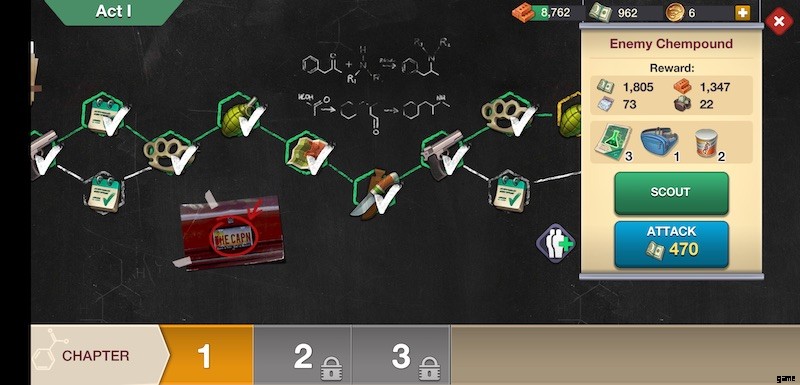 ストーリー キャンペーンに従うことは、基本的なリソースの最良のソースであり、スペシャリストのアップグレード マテリアルでもあります。 Breaking Bad:Criminal Elements の重要な機能は、ストーリーの中で、他のパスとは大きく異なる 1 つのパスを選択する必要がある決定ポイントがあることです。一般的に、これはほとんどの場合、実験室で白いガラスを調理するために時間を費やすか、領土の拡大に向けてより積極的なアプローチを取り、敵の陣営との銃撃戦に従事するかの選択になります。どちらの方法でも、多くの報酬を得ることができますが、後者の選択は通常より困難であるため、より良い報酬を獲得するチャンスもそこにあります.