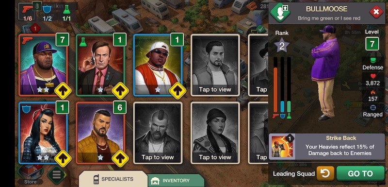 あなたの縄張り内のライバルのメーカーやディーラーを消滅させるのと同じように、同じ戦闘前の戦略をストーリーバトルに課すことができます.スカウト機能を利用して、銃撃戦で対処しきれないことがわかっている場合は、ためらわずに戻るボタンを押してください。より強力な攻撃力を提供する一部の部隊は、後で本部をレベルアップするときにロック解除されますが、突撃の専門家から実際にバフを得る一部のミニオンを頼りにしてください.
