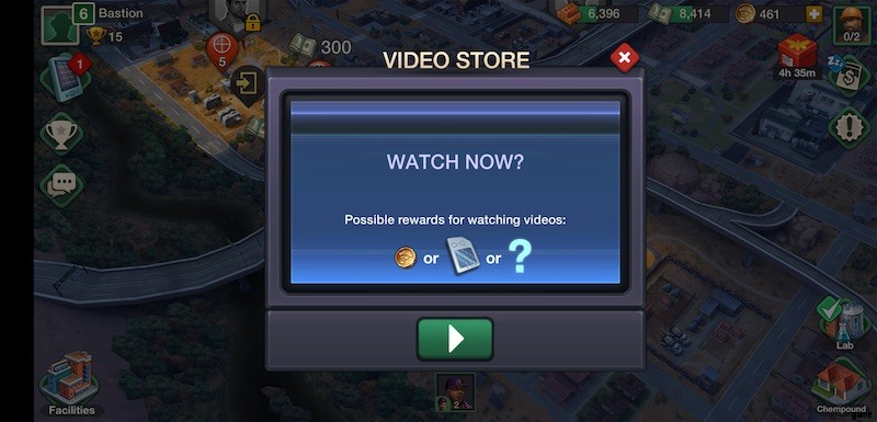 マップのビデオ ストアにアクセスして、短いビデオ広告を視聴することでゴールド、SIM カード、またはその他のリソースを獲得することもできます。領土拡大活動のためにマップに足を踏み入れるときはいつでも、その利用可能性を常に確認してください。
