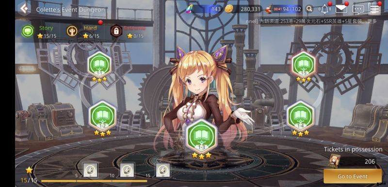 さまざまなゲーム内イベントがあり、通常の日課を実質的に完了すると、たくさんの景品がもらえます。ただし、いくつかのユニークなケースでは、イベントには、達成に基づいて報酬を得るために参加して征服する必要がある新しいステージが含まれています.現在、OVERHITでは特別イベント「コレットのイベントダンジョン」が開催されており、SSRキャラクターや専用ガチャ報酬テーブルで消費できる特別チケットなど、ユニークな報酬が盛りだくさんです。チケットを獲得したら、メニューの下のイベント アイコンからアクセスできるイベント ダンジョン ガチャをクリックして、それらを使用することができます。