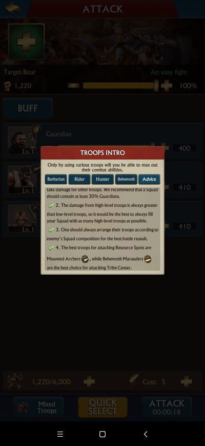 ファイティングは、Chief Almighty:First Thunder BC の中核部分です。ここまでは、居住地を発展させ、敵対的な要素から身を守る方法について説明してきました。しかし、そのすべての準備は、攻勢に出なければならない時が来たら準備ができていることを確認するためのものです.結局のところ、このゲームの最大の目標は、全領域を征服することです。