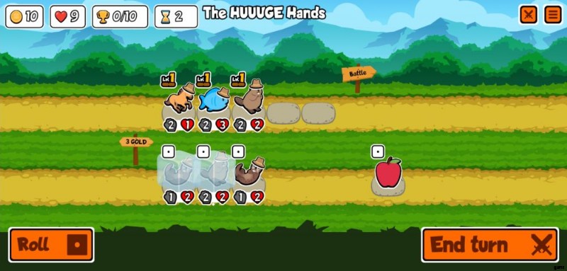 - 🪙 – 現在のゴールド。戦闘後、常に 10 ゴールドを受け取ります。余ったゴールドでターンを終了したり、戦いに勝ったりしても、この金額は増加しません。