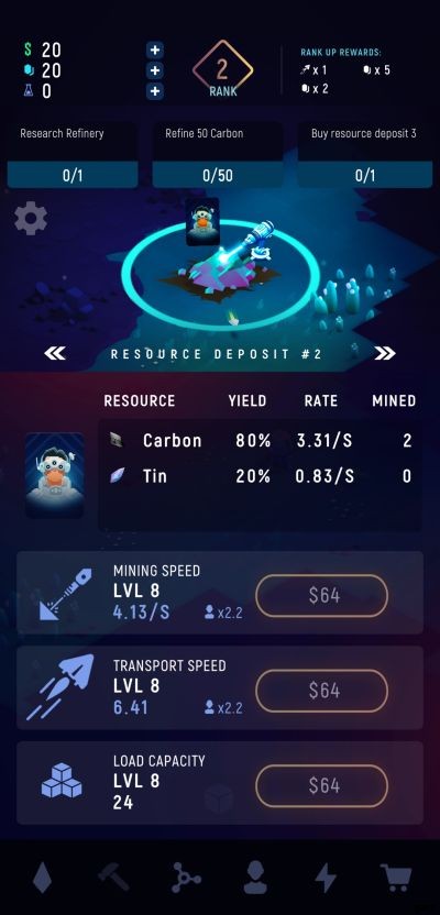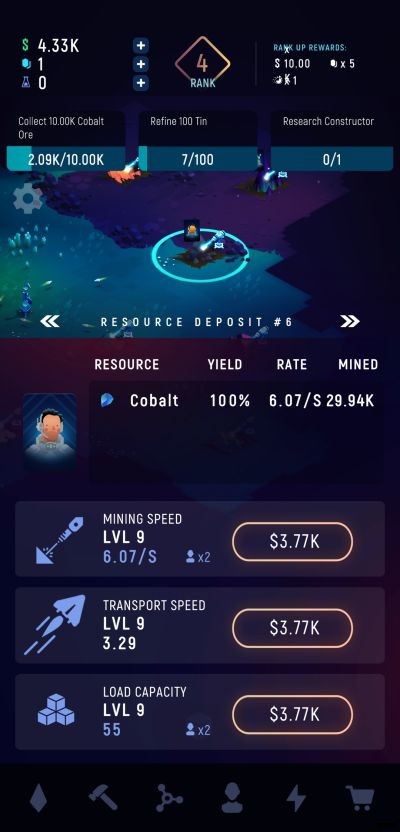 ExoMiner:Idle Miner Universe は、資源として鉱石を収集して販売するだけに限定されません。集めた資源は精製によってさらに処理することができ、精製されたアイテムは、販売したり研究に使用したりできる他の製品のベース材料になります。また、宇宙飛行士を雇ったり、アップグレードのために現金を投資する施設もあります。