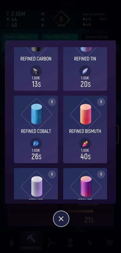 ExoMiner:Idle Miner Universe で採掘する鉱石は確かに利益を生み出し続けるのに十分ですが、鉱石自体は精製されたものに比べて高い価格ではありません。同様に、精製された鉱石が新しい技術を生産するための主な要件であるため、製品がはるかに高い価格で販売されることも期待できます.