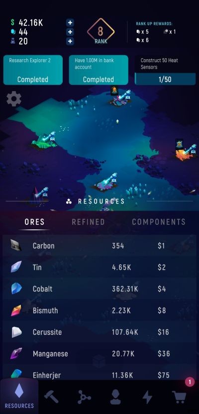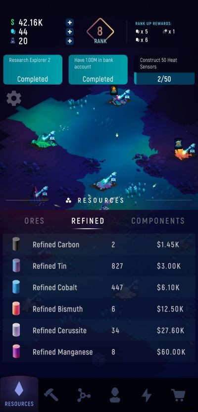 各鉱石の精製には値札が付いているため、より希少な鉱物を精製するには、十分な現金も用意する必要があります.施工も同様です。作成できる新しいアイテムごとに、ロックを解除するための 1 回限りのコストがかかります。新しい洗練されたアイテムや製品のロックを解除することも投資オプションとしてカウントされるため、それぞれに費やされたお金は、長期的には利益の増加にそれぞれ貢献することが期待できます.