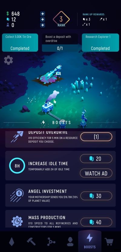 ExoMiner:Idle Miner Universe のようなすべてのアイドル ゲームに共通するコア コンセプトは、オフラインでゲームから離れていてもリソースを獲得し続けることができるということです。預金のアップグレードが生産量を増加させ、収益の増加に直接つながることを考慮すると、常に考慮すべきことは、獲得した現金を投資して預金をアップグレードし、さらに多くの利益を得ることです。