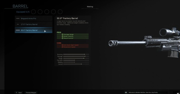 多くのスナイパー ライフルでは、一般的なルールとして、ターゲットからできるだけ遠く離れ、完全に目立たないようにする必要があります。モノリシック サプレッサーは、これらの両方に最適なオプションです。ゲームで最高のスナイパー アタッチメントです。 - バレル: 32.0ファクトリーバレル