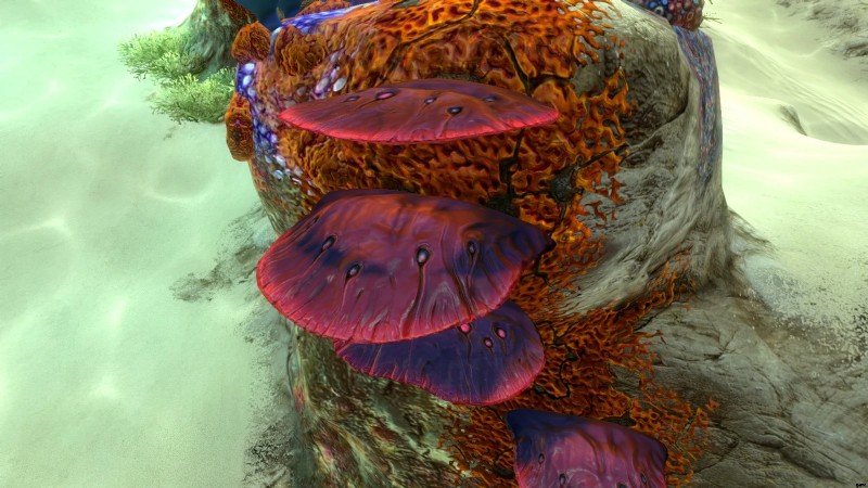 ここに来たら、岩の上にある色とりどりのサンゴを探してください。すべてが同じに見える限り、どの色を見つけても問題ありません。見つけたら、サバイバル ナイフを使ってサンゴを切り刻むと、円盤が落ちてきます。このディスクを拾うと、テーブル サンゴのサンプルが 1 つ手に入ります。心が満足するまで、サンゴのサンプルを切り刻み続けることができます。