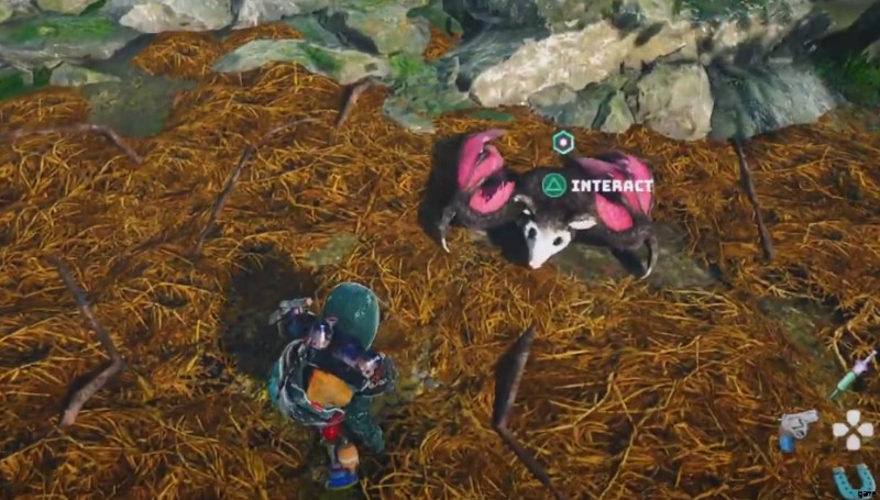 巣を見つけるには、ペブルの後ろの岩の黄色いペンキをたどる必要があります。黄色いペンキが塗られた岩を頂上まで登るだけです。岩の上に黄色い飛び散っている場所しか登れないことに注意することが重要なので、黄色い跡をたどってください。