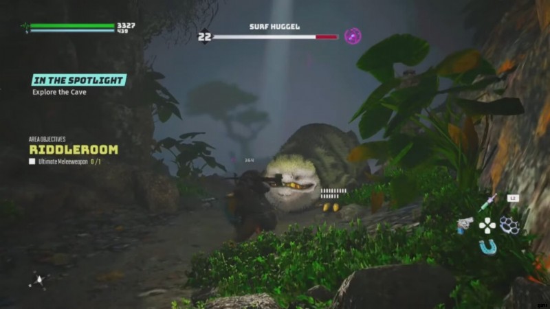 入り口を操作して洞窟を開き、そこに入って探索すると、中央に小島がある大きなスペースが見つかります.そこでは、Surf Huggel と呼ばれるローリング ミニボスと戦わなければなりませんが、優れた遠距離武器を手にしていれば対処するのは非常に簡単です。
