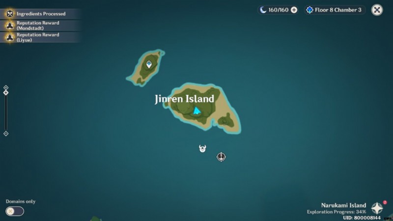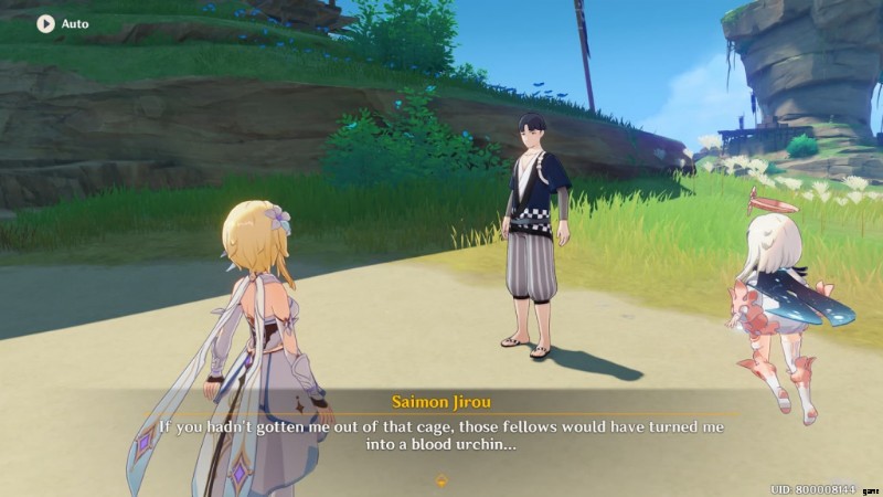 プレイヤーが最初にイナズマ地方に到着すると、鳴神島にあるリトウと呼ばれる港町に置き去りにされます。鳴神島の北には、ジンレンと呼ばれる小さな島があります。ジンレン島を探索していると、プレイヤーは檻の中に閉じ込められた NPC を発見します。 The Farmer's Treasure ワールド クエストを提供するのは彼です。