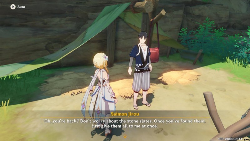 プレイヤーは、神里屋敷の近くで最初の古い石板を見つけることができます。海岸近くの野営地で見られます。