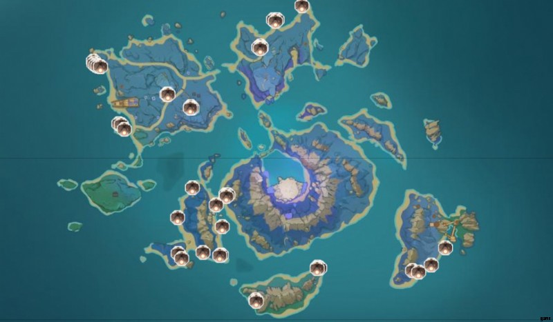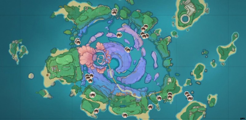ワタツミ島とセイライ島の両方について、下の原神インパクト 2.1 のスペクターの場所の地図を確認してください。