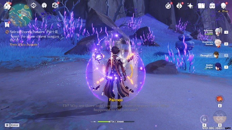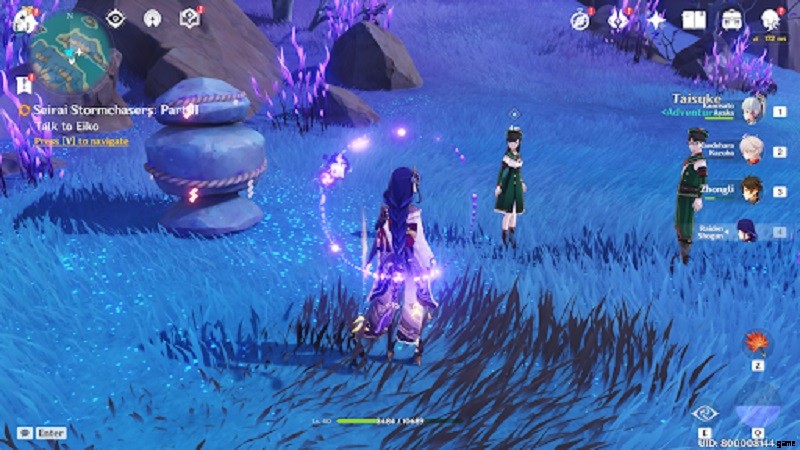 プレイヤーは、エイコと呼ばれる NPC からセイライ ストームチェイサーのワールド クエストを取得できます。上記のテレポートウェイポイントに移動します。そこに英子がいます。彼女に話しかけて、Seirai Stormchasers ワールド クエストをトリガーしてください。