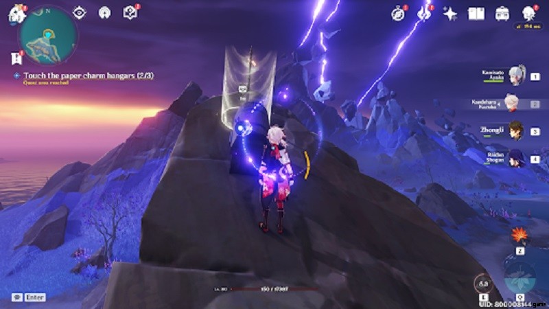 守護石を封印する前に、プレイヤーは3つの紙のお守りに触れなければなりません。 2 つは守護石の近くにあり、最後の 1 つは島の最西端にある岩の上にあります。