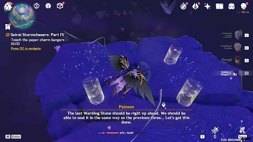 上のスクリーンショットを参考にして、3 番目のペーパー チャームを探します。 3つの紙のお守りすべてに触れたら、守護石を封印してください.