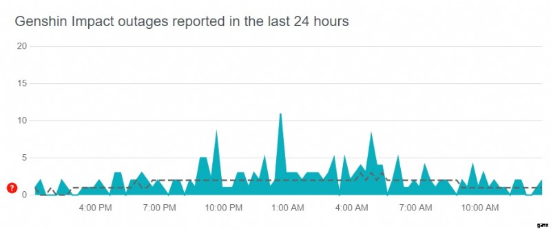 Genshin Impactサーバーのステータスを確認する別の方法もあります.開発者が投稿を書くよりも速く. Genshin Impact の DownDetector ページにアクセスするだけで、他の人が同様の問題を報告しているかどうかを確認できます。