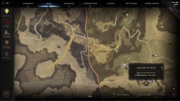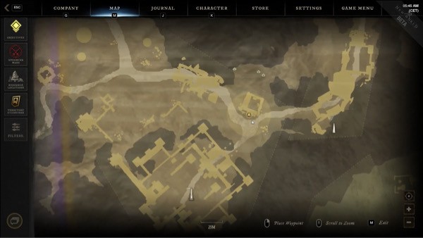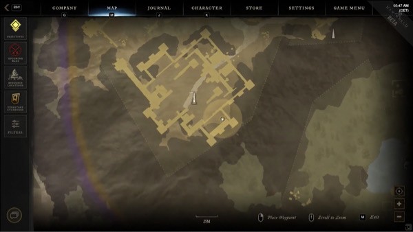 Light's Crown を出て幹線道路に入り、Northfolk に向かいます。交差点のすぐ後に、このエリアで 3 番目の小さな建物を見つける必要があるヒルトップ エンキャンプメントに出くわします。右側のこの建物の外側には、木製の台の上に置かれた食料箱があります。