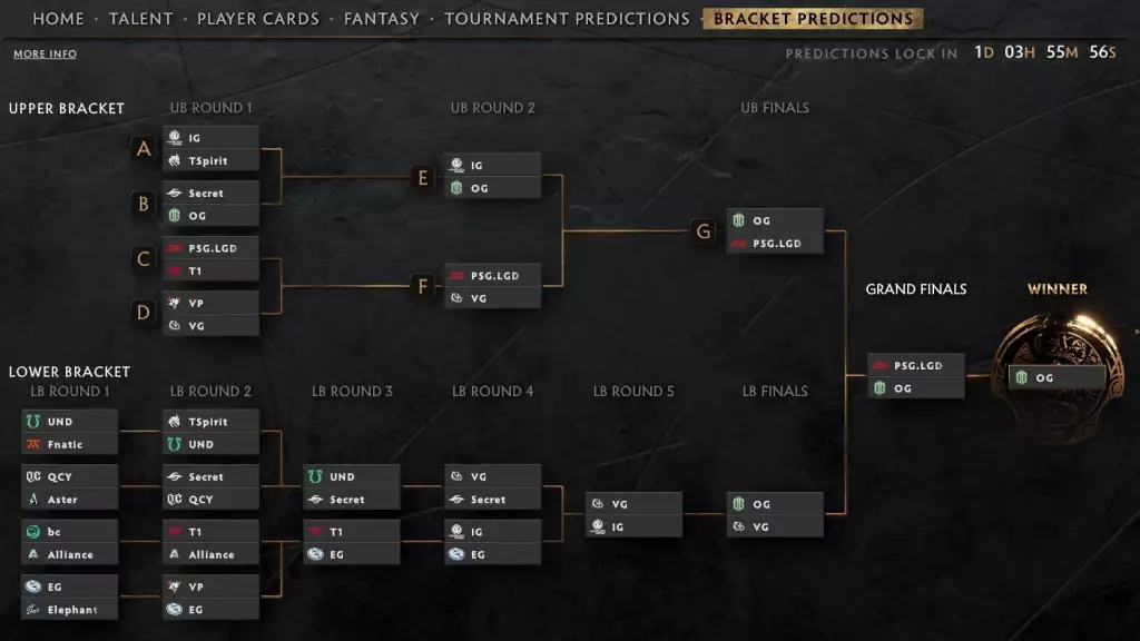 それ以外の場合、PSG.LGD がアッパー ブラケットを支配し、ロワー ブラケットのゲームで何が起こるかについてはほとんど不明です。これらの予測は、主に運に基づいています。