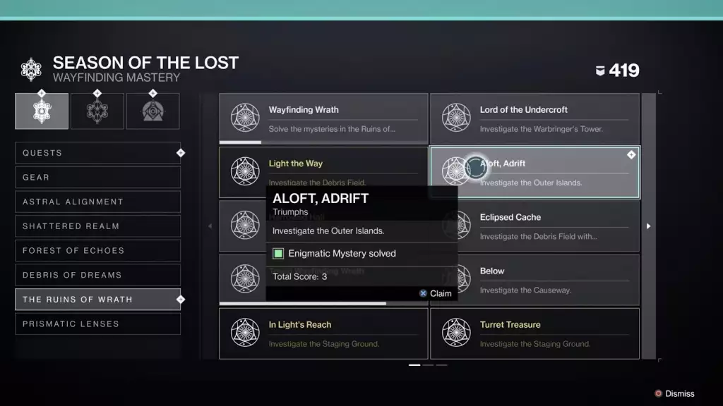 Destiny 2 のすべてのシーズンと同様に、失われたシーズンでは、シーズンごとのチャレンジや勝利の道のりがプレイヤーに提供されます。プレイヤーは毎週の Shattered Realm ミッションで Ruins of Wrath に移動する必要があります。そうは言っても、Destiny 2でアロフト、アドリフトの勝利を完了するためのステップバイステップガイドです.