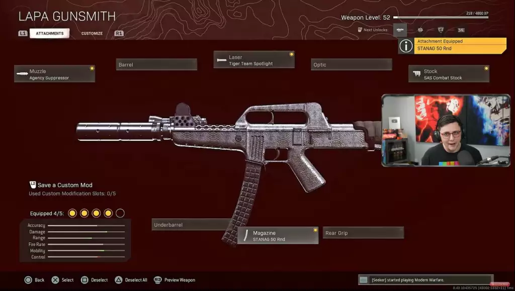 プレイスタイルに応じて、STANAG 45 Rnd Fast Mag を選択できます または STANAG 50 Rnd 弾薬用。後者は LAPA の弾薬容量とリロードの速さを強化しますが、ADS 時間は犠牲になります。ただし、前者は追加の弾薬容量と引き換えに ADS 時間とリロードの速さを犠牲にします。
