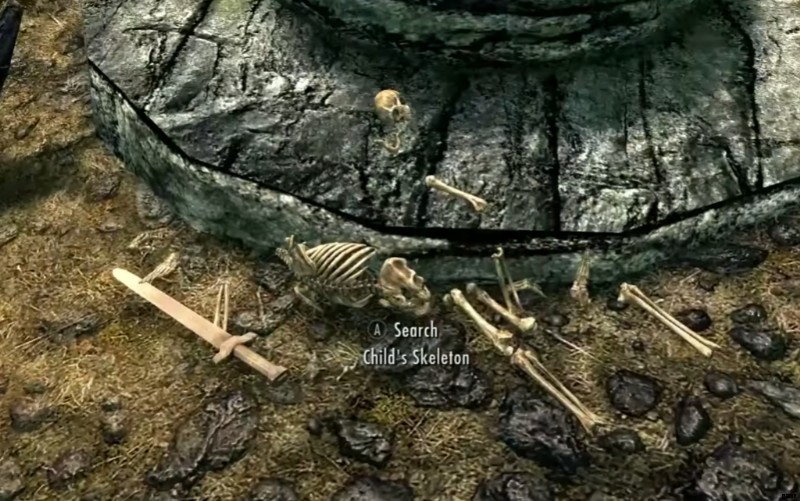 家を出てすぐ、玄関からまっすぐ見ると、真ん中に大きな木が2本、横に小さな木が2本、合計4本の奇妙な形の木が見えます。そこに行くと、すぐ後ろに井戸と子供の骸骨があります。スケルトンを検索し、リンのおもちゃの剣という名前の彼の隣にある木製の剣を選びます.最初にリンの日記を必ず読んでください。そうしないと、クエストが失敗します。