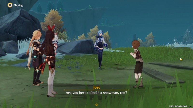 彼、アンバー、そして「スピンドリフトの騎士」エウラとの大きなやり取りの後、あなたは山に行き、両方の冒険者が雪だるまを作るための物資を見つけるのを手伝わなければなりません.