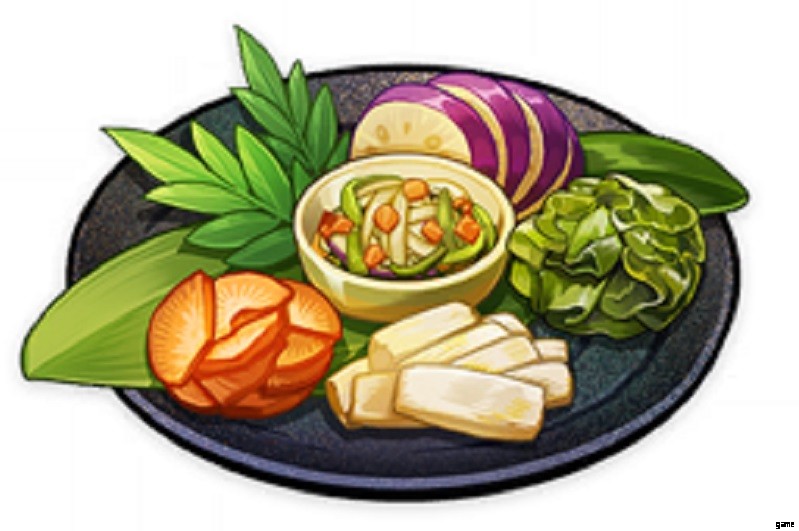 Genshin Impactのゲーム内伝承の5つの漬物宝物は、次のように説明されています。 4 種類の野菜を混ぜて盛り付け、「宝物」を 1 つ追加したことから、5 種の漬物という名前が付けられました。"