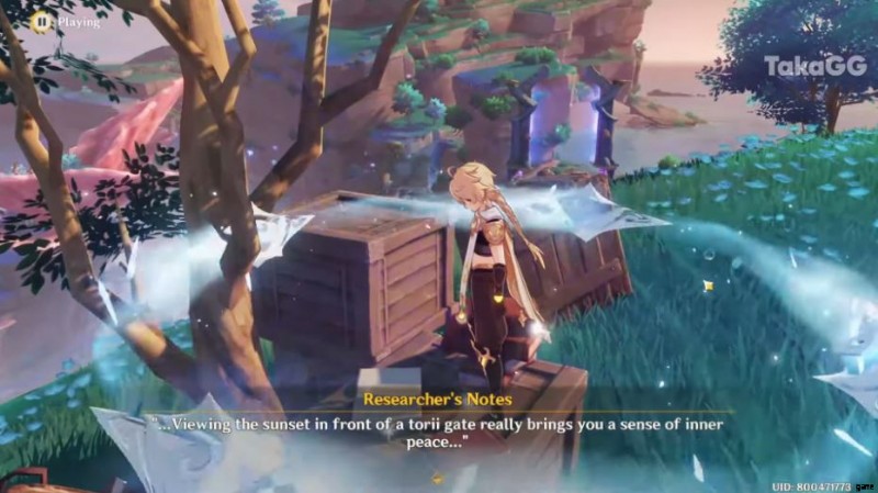 まず、最初のメモは三郷宮神社で見つけることができ、東のウェイポイントにテレポートすることでそこに到達できます.次に、北東に向かい、岩の上にある研究者のメモを調べます。