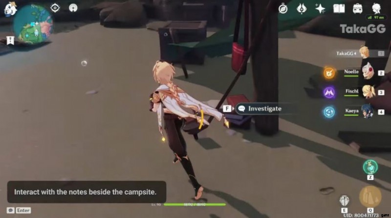 4 番目の音符を見つけるのは、非常に簡単なプロセスです。ムーウン神社のセブンの像にテレポートし、北方向にナビゲートするだけです。キャンプの下にある「調査」ボタンをクリックして、4 番目のメモを見つけます。