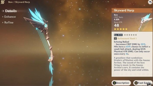 その高い ATK とかなりのクリティカル率、およびクリティカル DMG 統計を備えた Skyward Harp は、Genshin Impact で利用できる最高の弓の 1 つです。