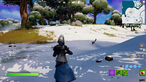 ニワトリは、スノーボール ランチャーなどの他のウィンターフェスト 2021 アイテムと比較すると、比較的見つけやすいです。プレイヤーは通常、家の外のマップの雪が降るエリアで 1 つのクーイングを見つけることができます。見つけるのは簡単ですが、実際にマップ上でホバーするには、プレイヤーがそれらを拾う必要があります。ニワトリは非常に速く走るので、ニワトリをつかむのは面倒です。捕まえる最善の方法は、どこかに追い詰めるか、後ろから静かに近づくことです。