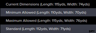 すでにピッチ サイズを決めていて、シーズンが始まって、間違った決定をしたのではないかと心配している場合は、これを知っておいてください。実際のピッチ サイズがゲームに与える影響はわずかです。サッカーのようなパーセンテージのゲームでは、これを完璧に微調整することが勝敗を分ける可能性がありますが、最終的にははるかに重要な要素があります。自由に使える選手、戦術、トレーニング、人材管理などです。