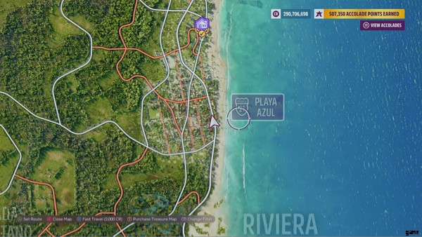 ドライバーはプラヤ アズールの東側の道を通り、壁画を見つけるために町まで移動する必要があります。壁画のある道路の左側にある青と緑に塗られた家を探してください。壁画を通り過ぎないように、カメラが左にパンされていることを確認してください。