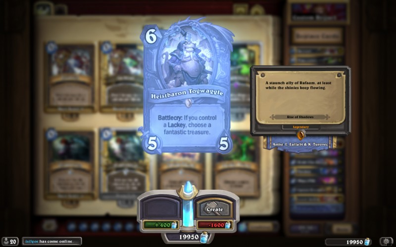 1 ~ 2 週間後、かなりの量のゴールドが貯まり、パックから魅力的な新しいカードがいくつかできました。見習いリーグを終了し、しばらくランク戦をプレイしています。