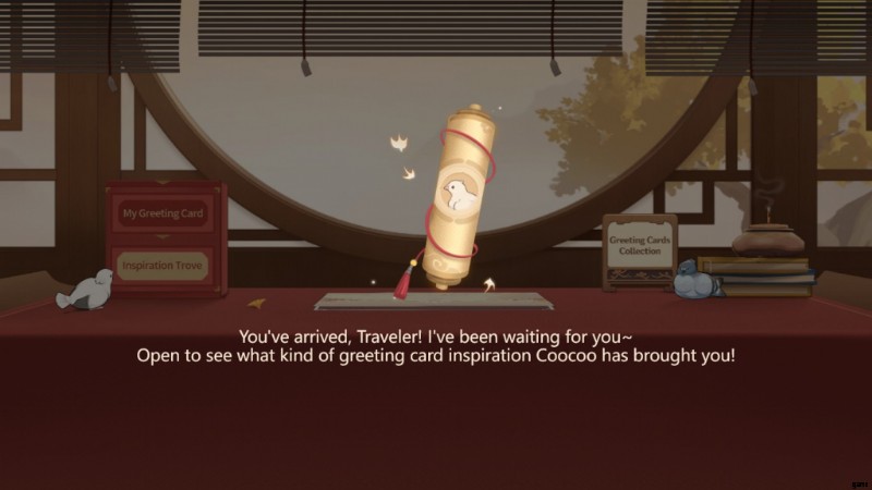 ここでは、白くてかわいいハト、クークーから送られた特別なグリーティング カードを見てもらいます。グリーティング カードには、トラベラーズ、シャンリン、シェンヘ、ヤンフェイなど、ゲーム内のキャラクターからのメッセージがいっぱいです。