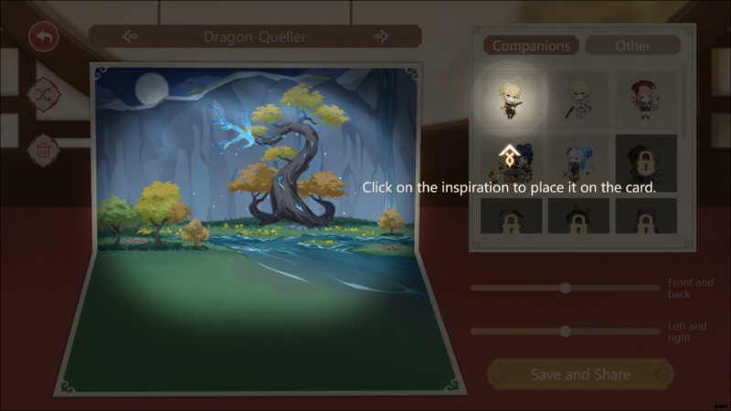 完成したら、「保存して共有」ボタンをクリックして、個人のアルバムに保存したり、HoYoLaB で共有したりできます。作成および保存できるグリーティング カードの最大数は 50 で、お気に入りにできるカードの最大数は 30 です。