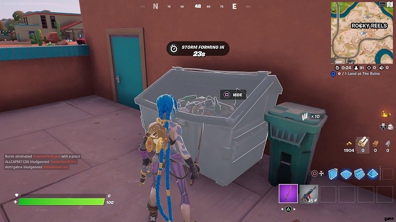 隠れ場所を見つけたら、それらを破壊するのは簡単です。収穫ツールに切り替えて、隠れ場所を破壊するだけです。ゴミ箱の 1 つに別のプレイヤーが隠れている可能性があるため、奇襲に備えてください。
