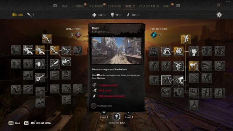 レベルアップしたいアクティビティを行うことでスキルを向上させる Skyrim などのゲームと同じように、Dying Light 2 でも同じことを行います。獲得したポイントは、パルクール スキルのロックを解除するために使用します。