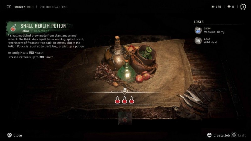 Aloy's Hunter's Kit を使用して自然界でヘルス ポーションを作成しているときに、Workbench よりも作成に多くの材料が必要になることがあります。このレベルの詳細により、Horizon Forbidden West の作成プロセスにより没入感が増します。