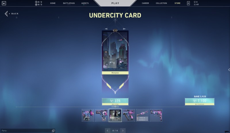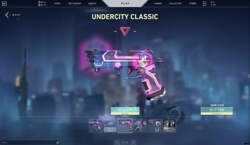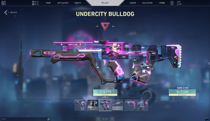 Undercity バンドルを 7100 VP で購入できます。これほど多くのお金を使いたくない場合は、好きなスキンを購入することもできます。
