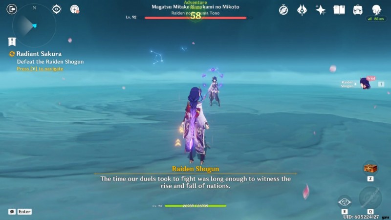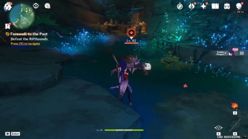 洞窟内に到達すると、別のショートカットシーンが始まり、鳥居が現れ、ショーグンは彼女と一緒にゲートに入るように求めます.ゲートに入ると、雷電将軍との対話があり、その後、彼女と戦わなければなりません.戦いが終わると、過去への別れのクエストが完了します。