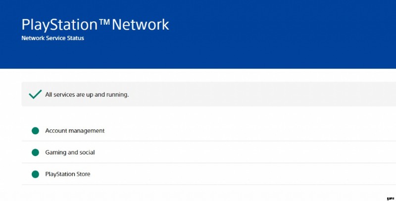 これはソニーが発行した PlayStation 限定版であるため、まず公式ステータス ページで PlayStation Network の問題があるかどうかを確認することをお勧めします。