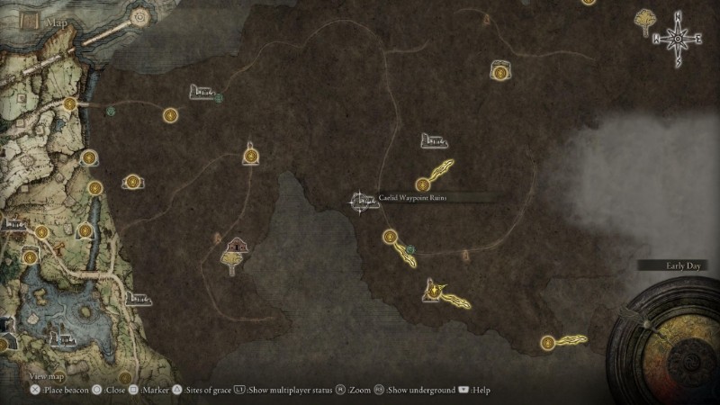 セリア クリスタル トンネルは強力な敵であふれているため、外に出て最寄りのグレースを見つけることをお勧めします。ここから、セリア クリスタル トンネルの南西にある Caelid Waypoint Ruins と、Meteorite Staff を入手できる Sages Ruins の Streets に行かなければなりません。