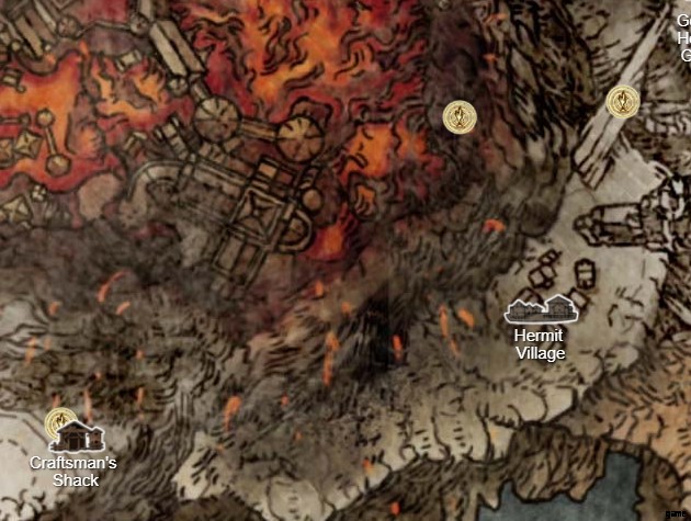 村にたどり着くには、火山の北側から火山の西端まで、火山の周りを横断する必要があります。移動中に隠者の小屋と職人の小屋を通り過ぎます。村の北東に亜人の女王マギーがいるはずです (ありがとう、Fextralife)。