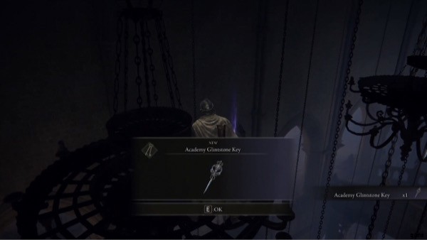 窓から入り、梁の下にシャンデリアがぶら下がっている木製の梁を渡ります。シャンデリアにドロップダウンすると、死体が見つかります。略奪すると、2 つ目の Academy Glintstone Key が得られます。