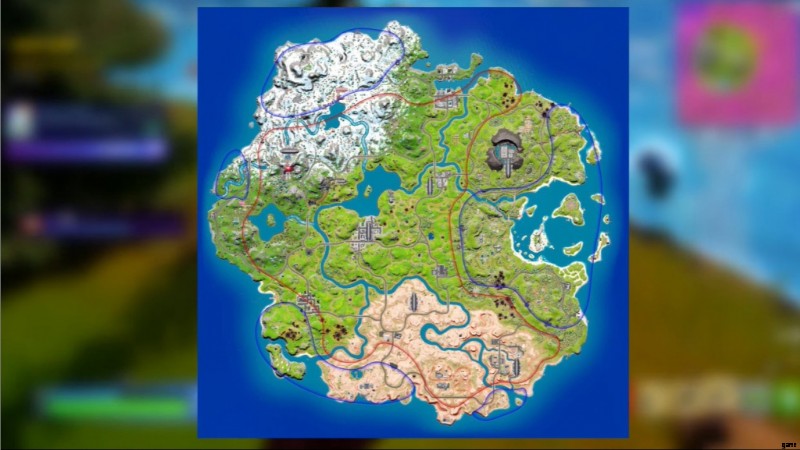 フォートナイトのマップ上の赤と青の線は何ですか?