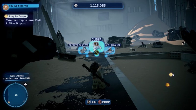 完了すると、レイと BB-8 に変身し、墜落したスター デストロイヤーからスクラップを集めて、ニイマの前哨基地にいる Unkar Plutt と取引する任務を負います。