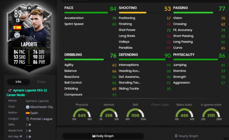 Aymeric Laporte Showdown SBC カードは、以前の最高のバージョンに比べて OVR が +2 しか有利ではありませんが、加速とスプリント速度では大幅に有利であり、両方が合計 19 ポイント向上しています。