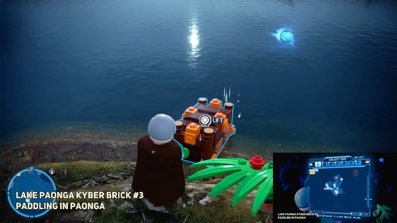 最初のレンガは、パオンガ湖のランディング パッド エリアの南端にあります。レンガを回収するには、オビ=ワン ケノービのようなフォース ユーザーを使って階段状のプラットフォームを作成し、大きな箱を積み重ねる必要があります。